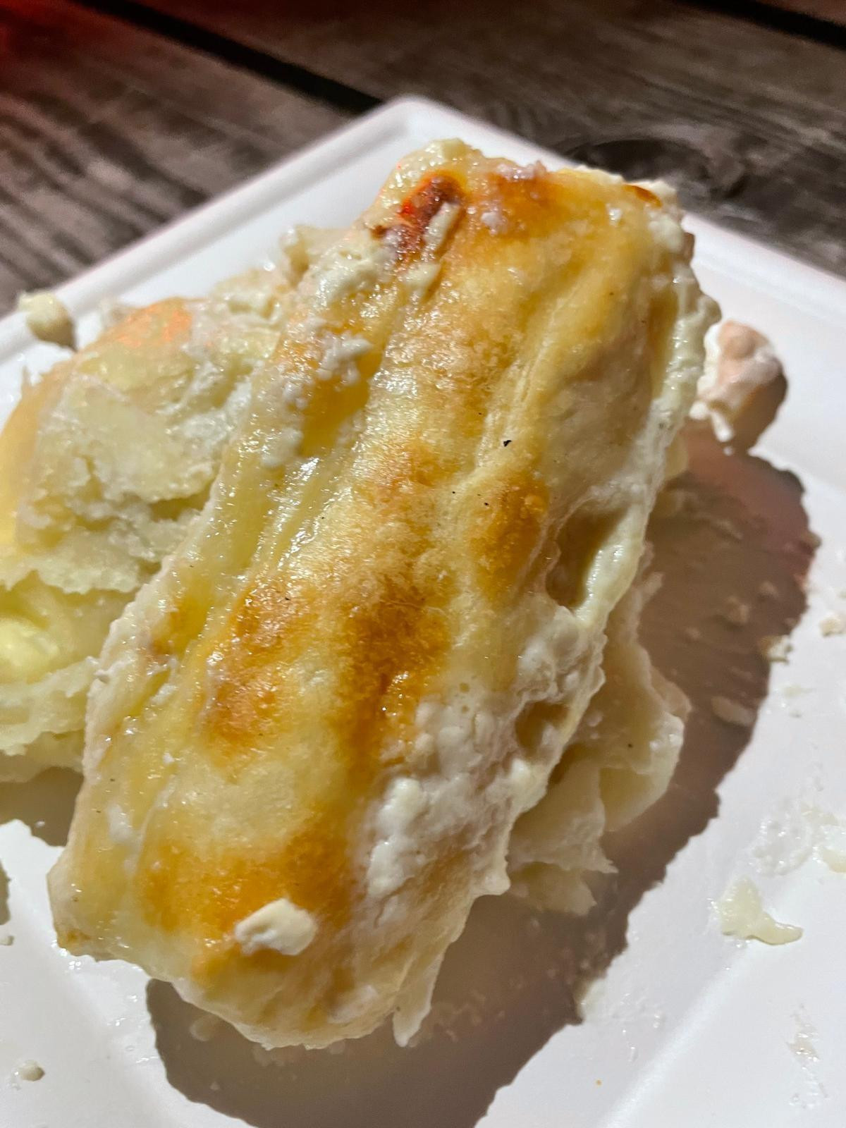 There we tried roasted pork knuckle with potatoes (€8.50) and cheese štrukli (€6), while you could also choose apple štrukli. The pork knuckle was soft and juicy, simply melting in your mouth, with equally good sautéed potatoes and a sauce made from vegetables and roast drippings. We also got some pieces of homemade bread with it.