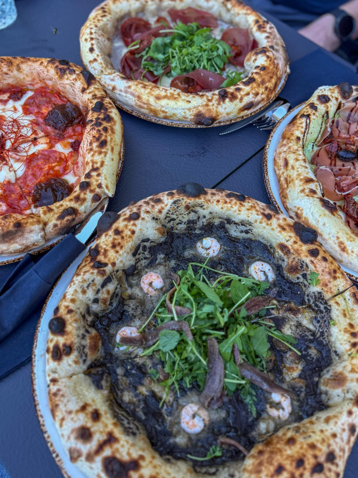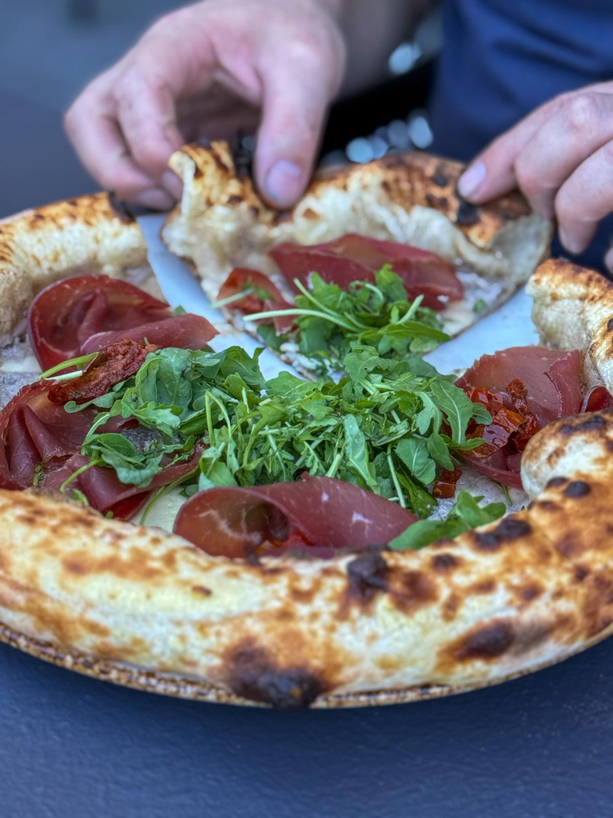 The pizzas arrived at the table in a commendable ten minutes. The restaurant staff also brought scissors for cutting, which is an excellent practice since canotto-style pizzas, with their high and airy crusts, are much easier to eat this way. The waiter quickly, efficiently, and professionally cut the pizzas in front of us. The dough is clearly the result of high hydration, certainly above 70 percent, but what is truly praiseworthy here is the structure. Namely, while with many high-hydration pizzas the bottom remains wet and soggy, here the dough, thanks to slightly longer baking at lower temperatures, was almost crispy on the bottom. Achieving such a texture is a great success in itself.
